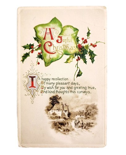 - 1900s Greeting Card Postcard Joyful Christmas Winter Scene Farm Poem E83B