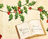 1900s Greeting Card Postcard Merry Christmas Holly Embossed Ephemera E83B