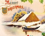 1900s Greeting Card Postcard Merry Christmas Winter Scene Cabin Embossed E83B