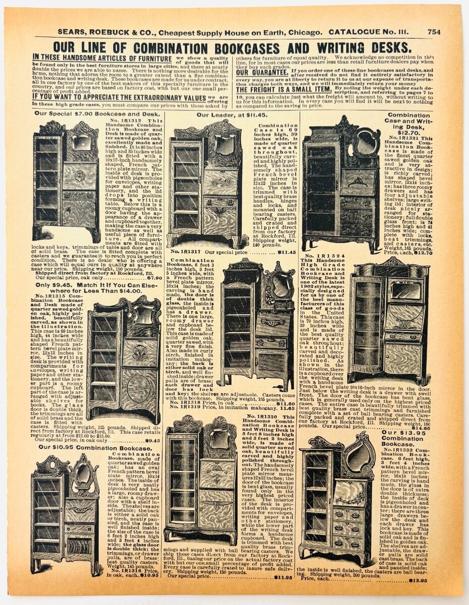 - 1901 Bookcase Writing Desk Reproduction Advertisement Sears Furniture DWU17C