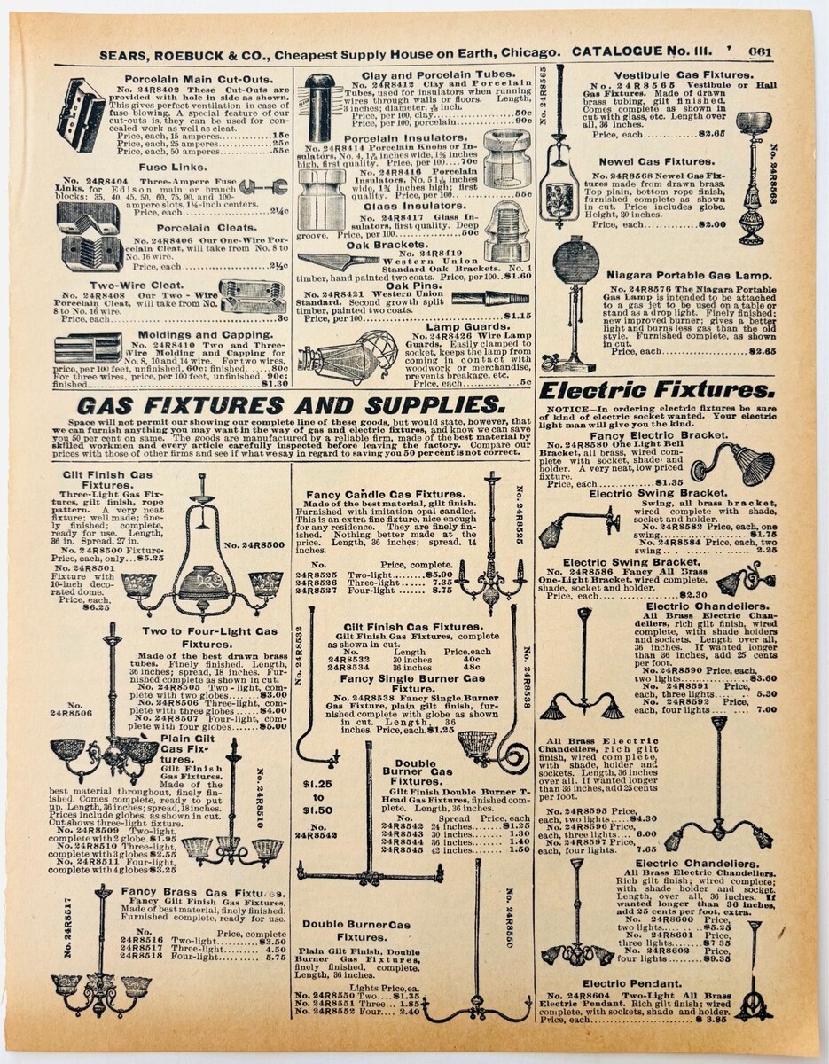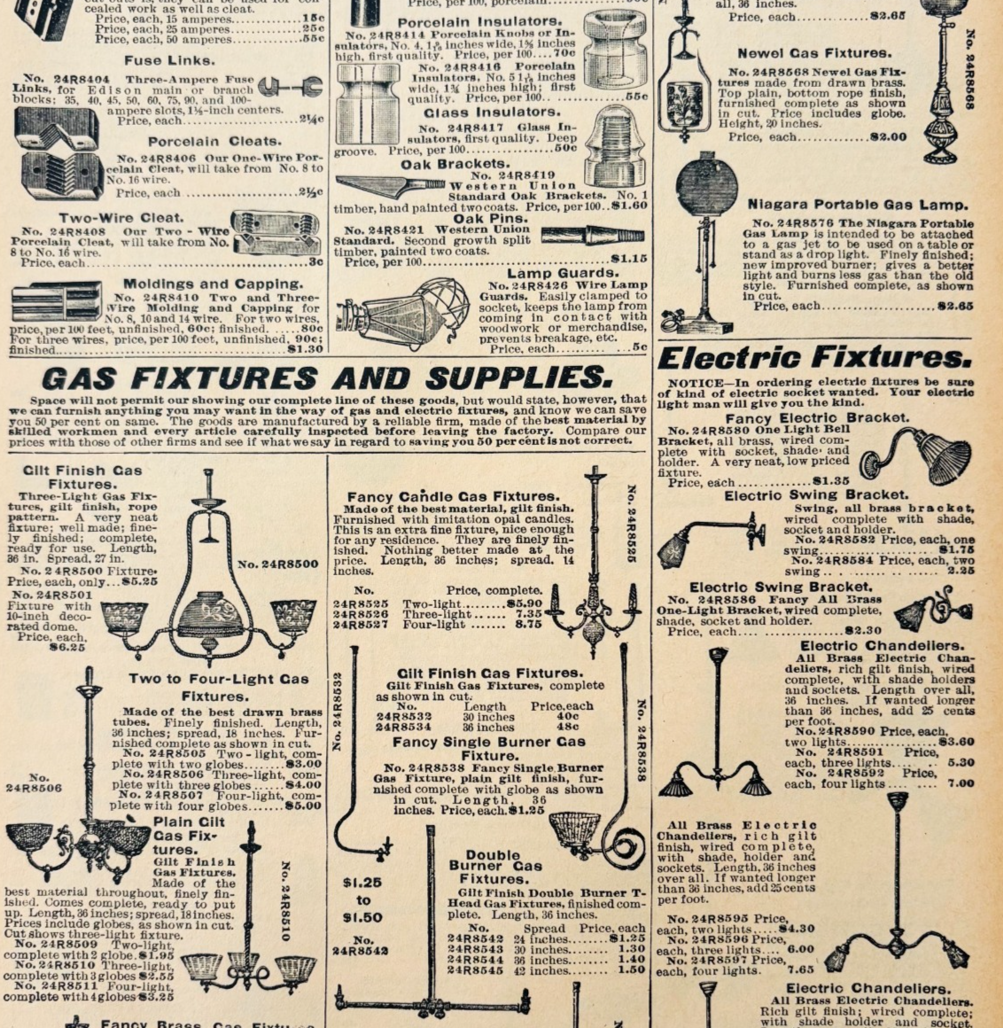 - 1901 Gas Lighting Fixtures Reproduction Advertisement Sears Home Supply DWU17B