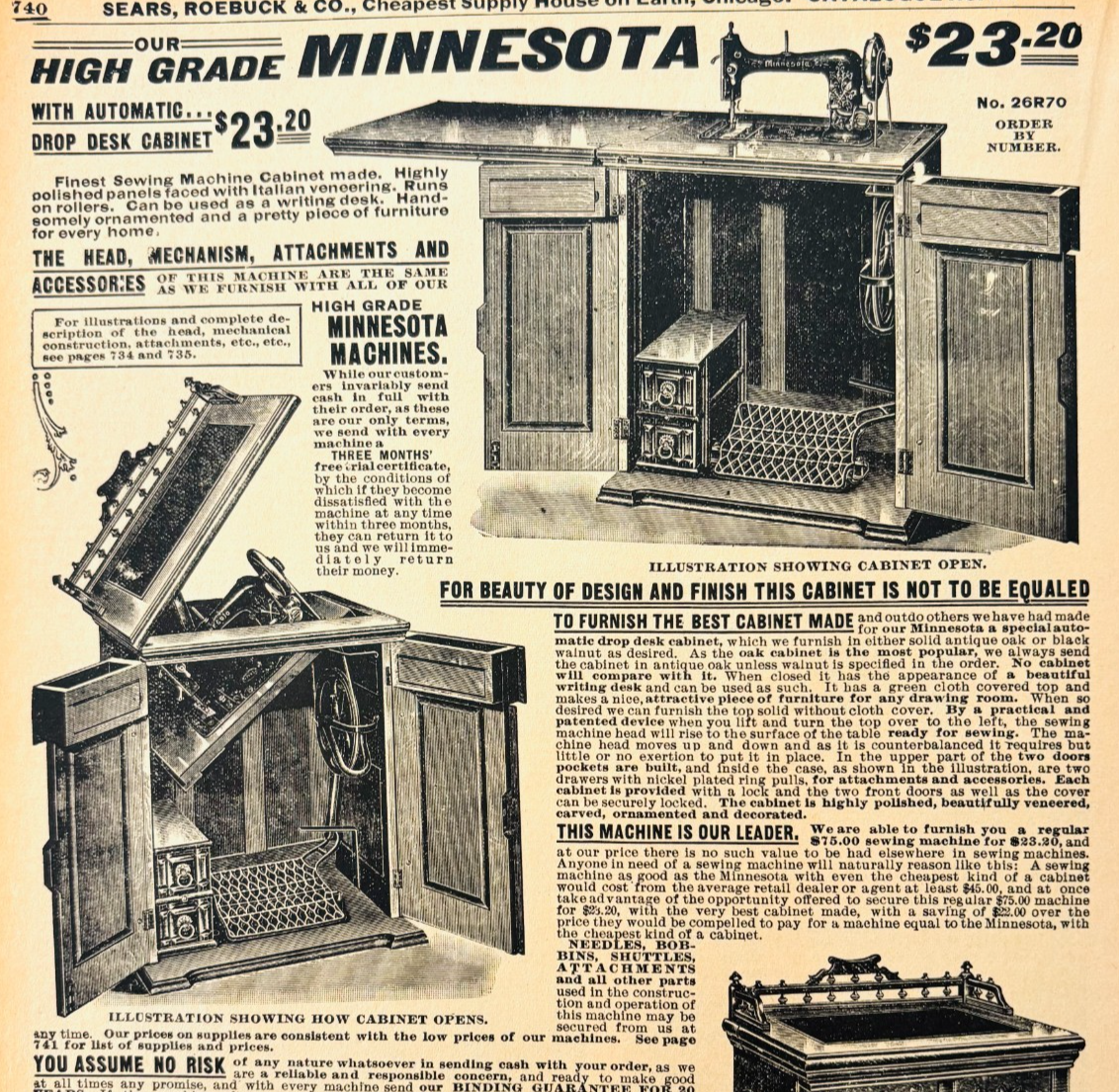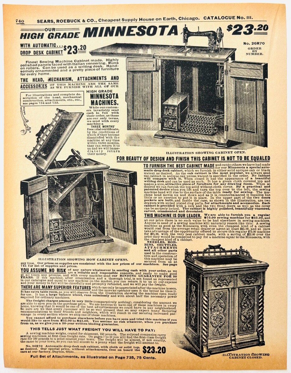 - 1901 Minnesota Sewing Machine Reproduction Advertisement Sears Furniture DWU17D