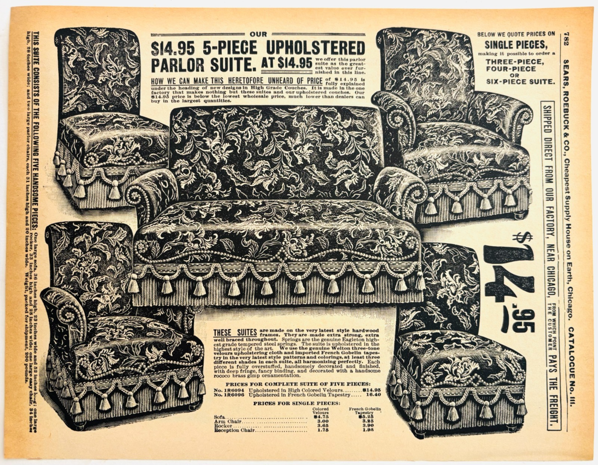 1901 Parlor Suite 14 pc Set Reproduction Advertisement Sears Furniture DWU17D