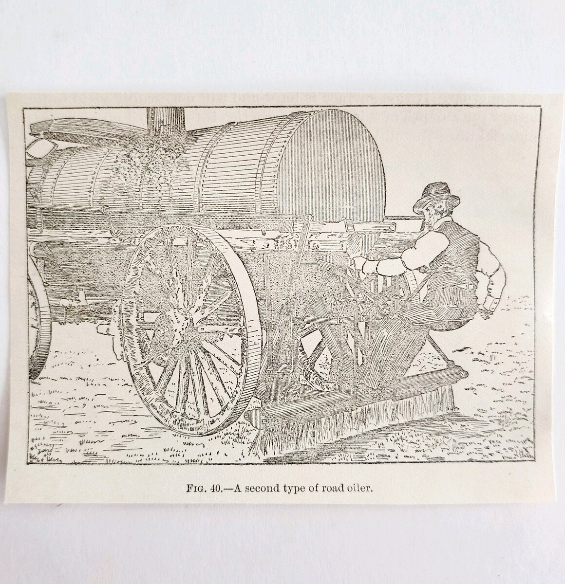 - 1903 Road Oiler & Operator Wood Engraving Agriculture Farming Implements F6D