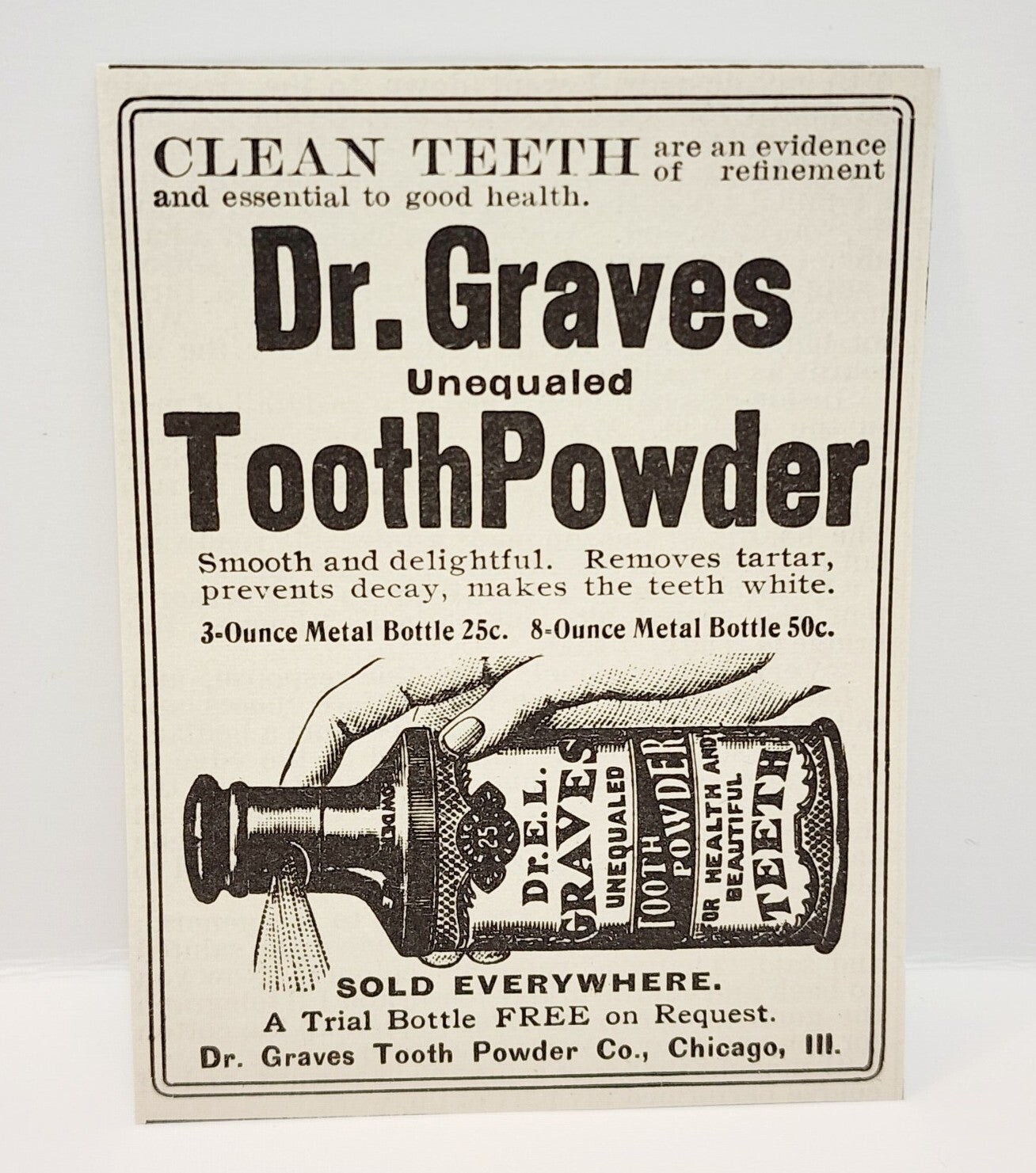 - 1904 Dr. Graves Tooth Powder Dental Advertisement Ephemera 3 x 2.25"