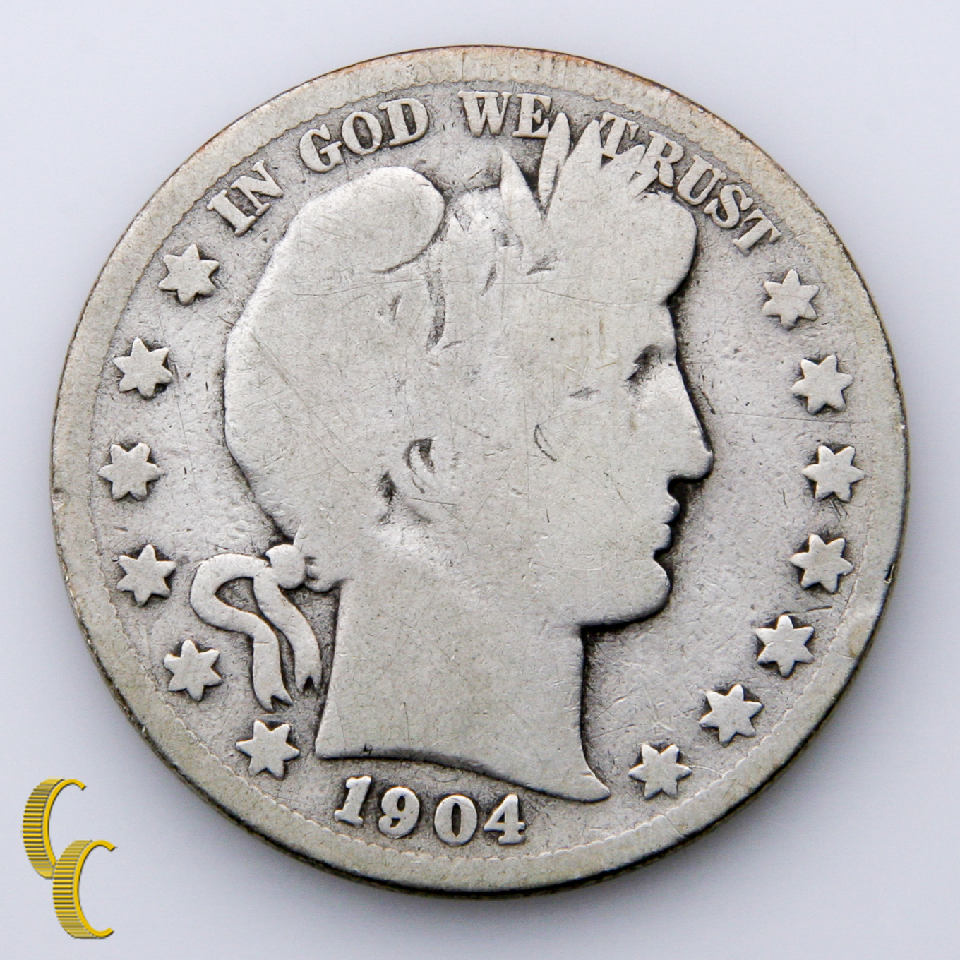 1904-S Silver Barber Half Dollar 50c (Ag +) About bon plus etat