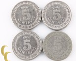 1905 1906 1907 MEXICO 5 CENTAVOS LOT (VF-AU, 4 pieces) 5c cinq nickel KM-421