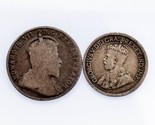 1905-1916 Lot de 2 pieces d'argent canadiennes 1915 5C VF +, 1905 10C VG +