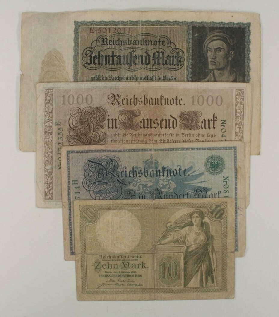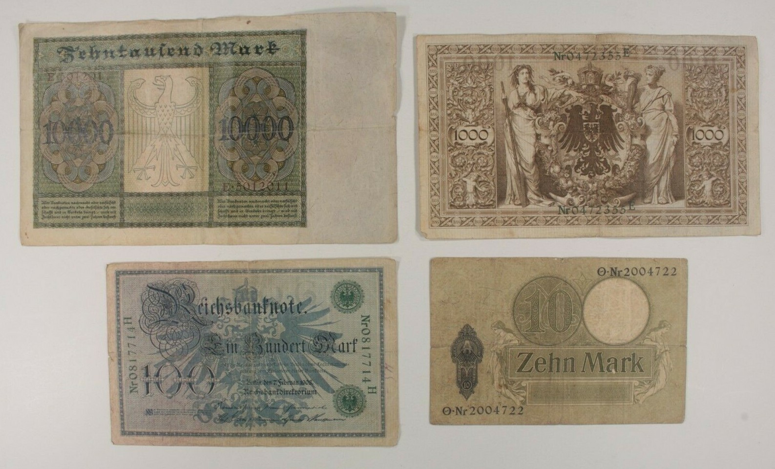 1906-1922 Germany 4-Notes Set // 10 Mark to 10000 Mark