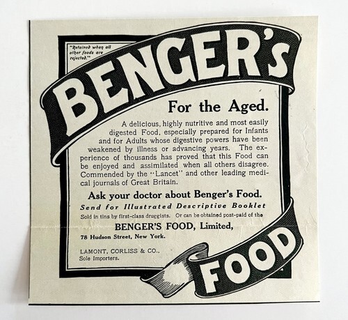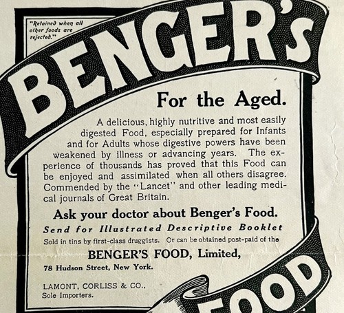 - 1906 Benger's Food For the Aged Advertisement Ephemera 4.75 x 4.5"