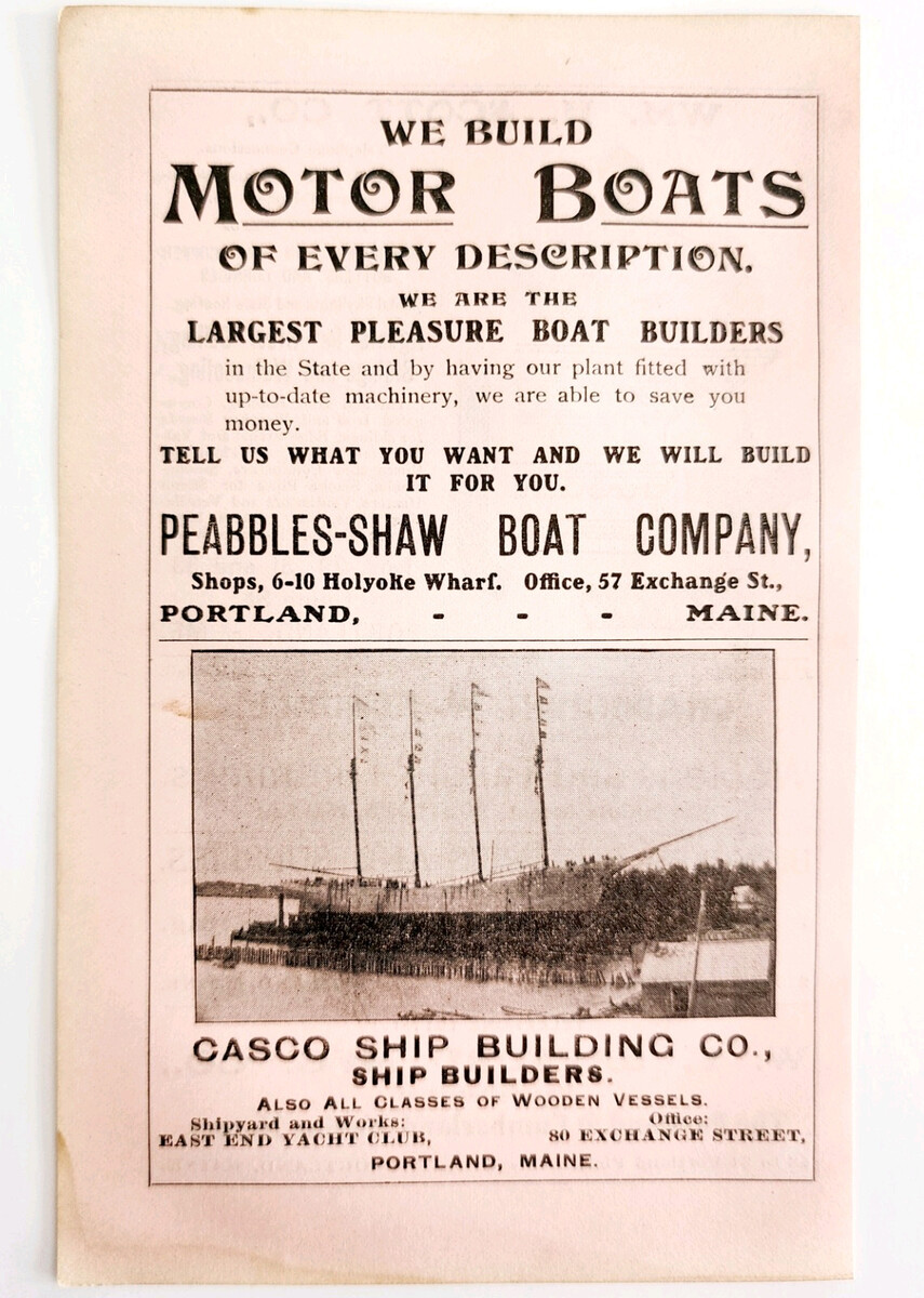 - 1906 Casco Ship Building Company Advertisement Maine Peabbles Shaw Boat Co E17H