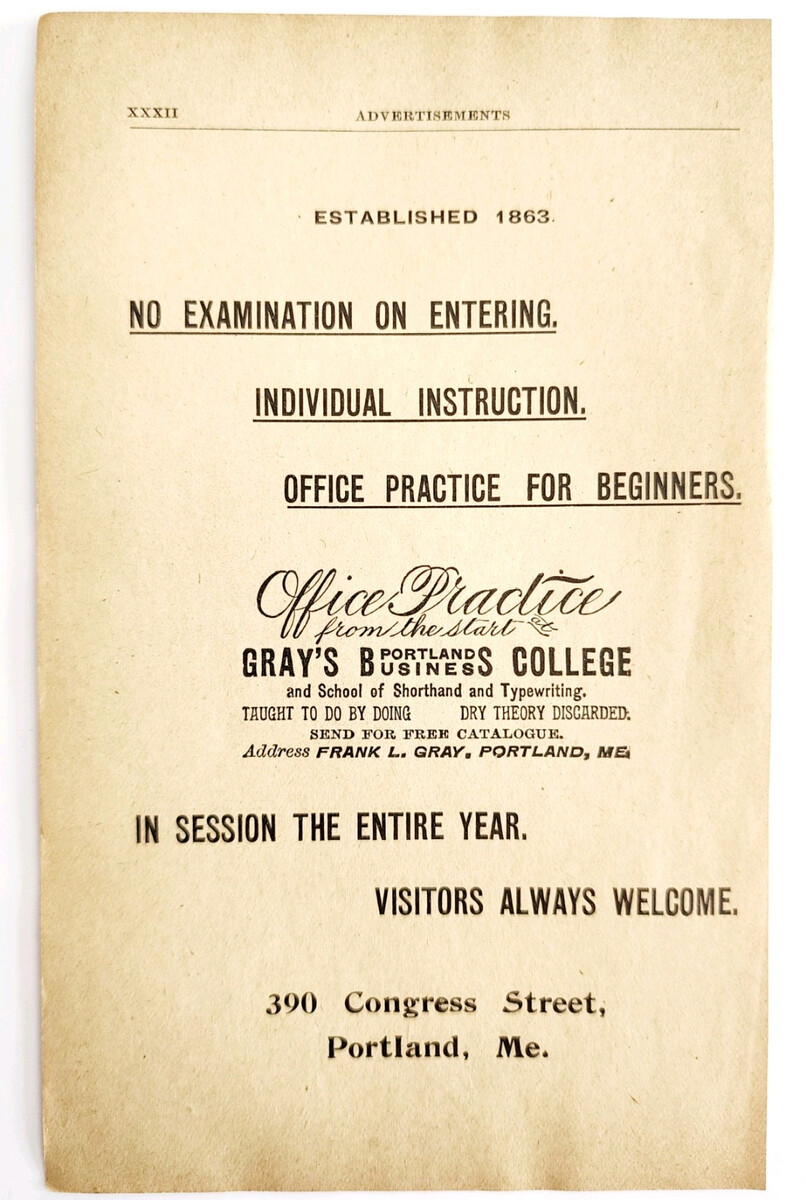1906 Gray's Portland Business College Advertisement Maine Education E17H