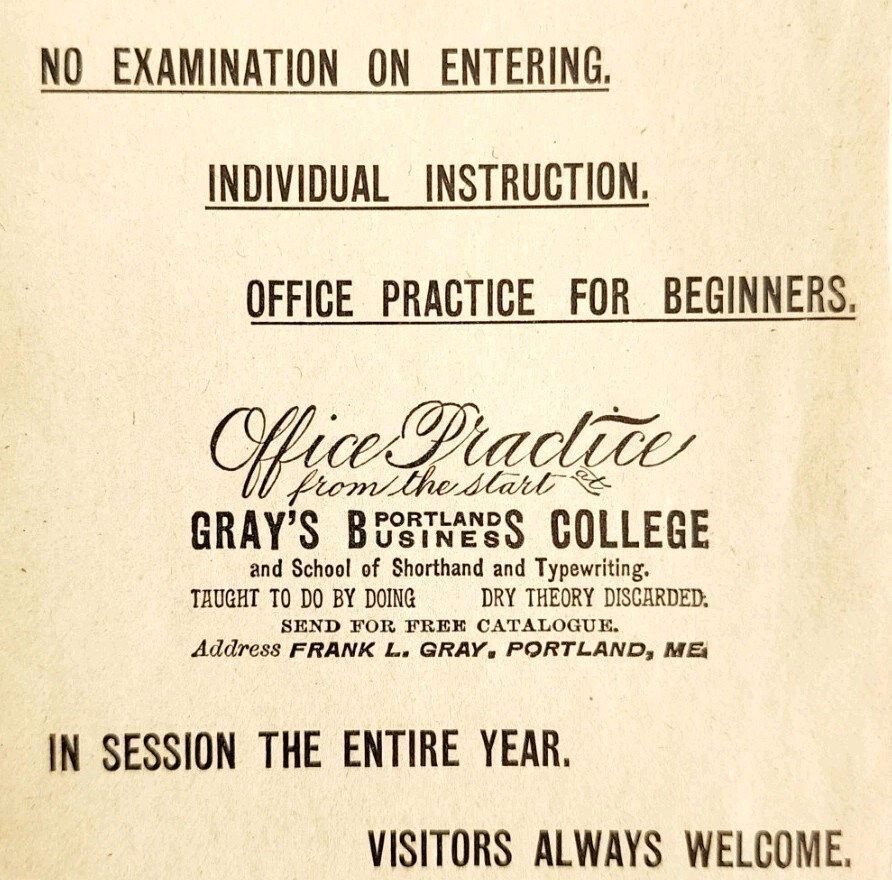 - 1906 Gray's Portland Business College Advertisement Maine Education E17H