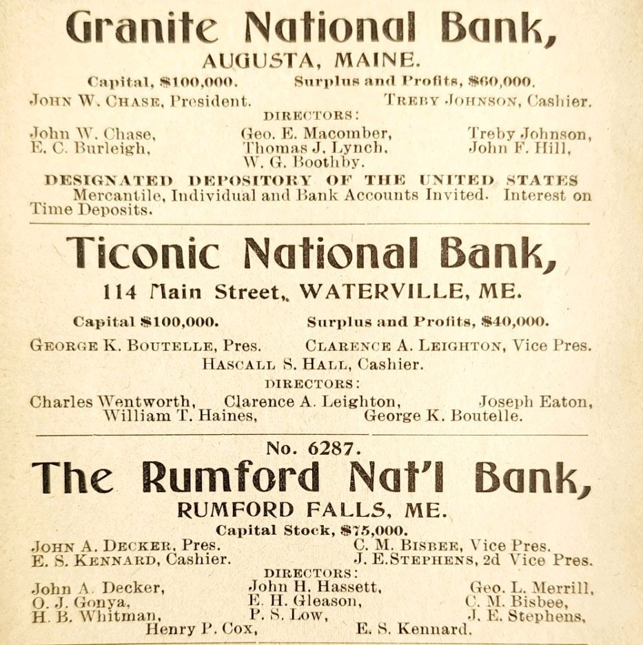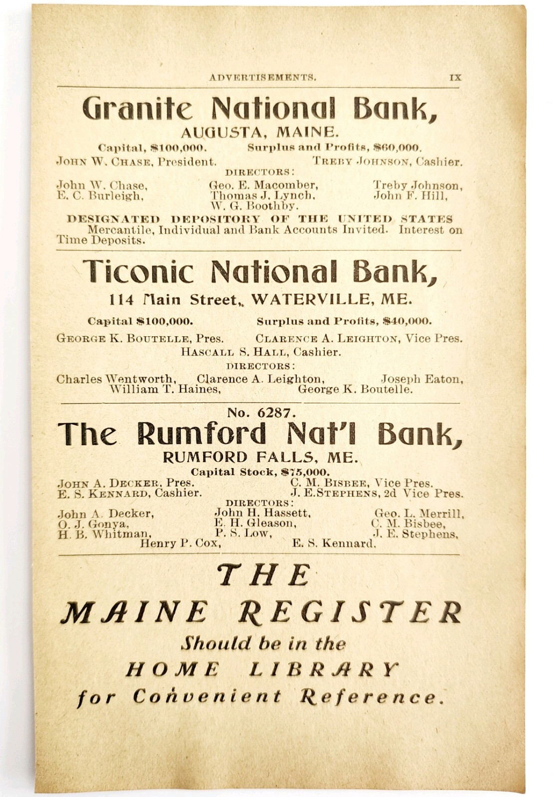 - 1906 Maine National Banks Advertisement Banking Augusta Waterville Rumford E17H