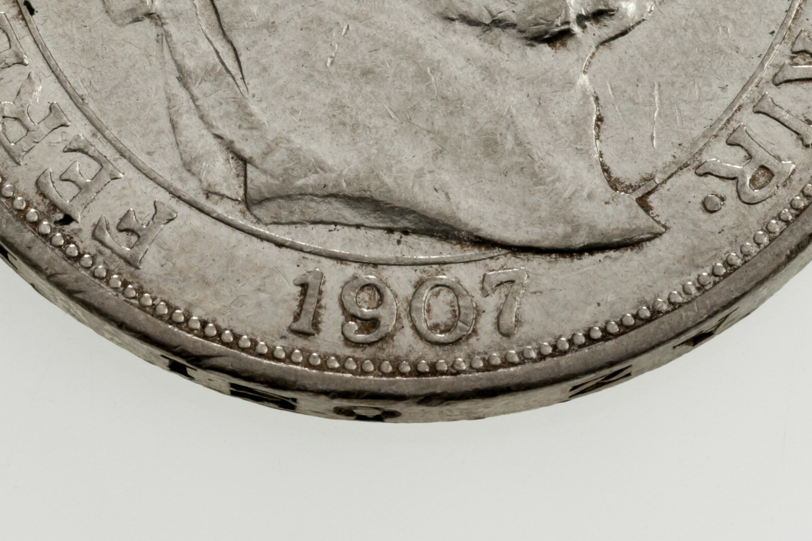 1907 Hungary 5 Korona Silver Coin Restrike 40th Anniversary AU Condition