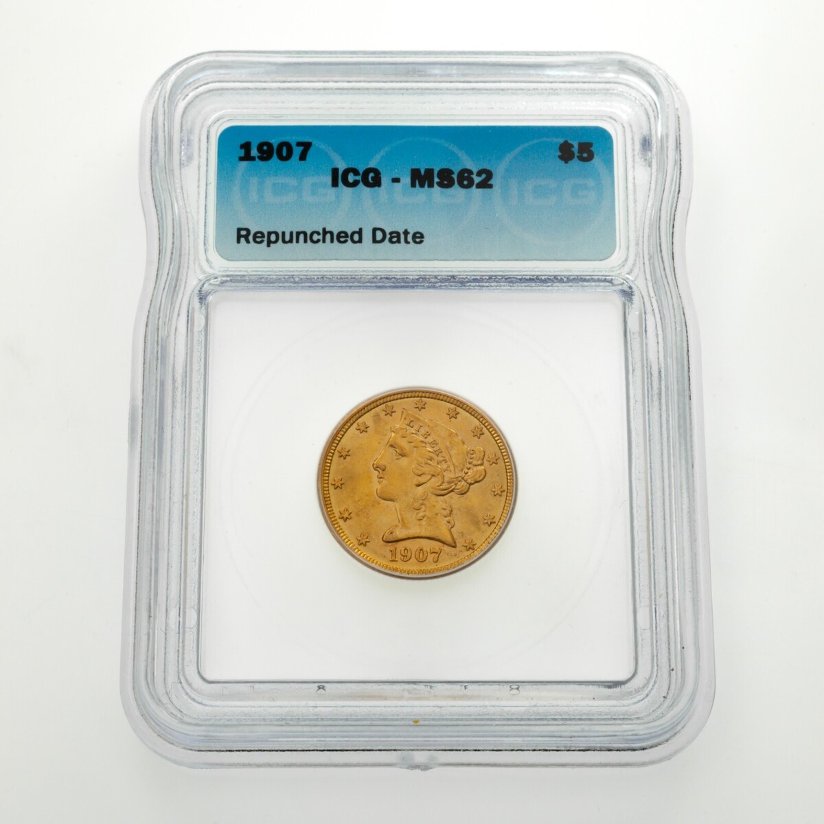 - 1907 Or Liberty Repoinçonnée Date Classé Par ICG Comme MS62