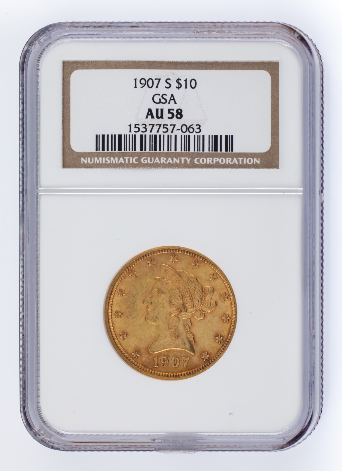 1907-S G $10 Or Liberty Tête Classé Par NGC Comme AU-58 ! Publié Par Gsa