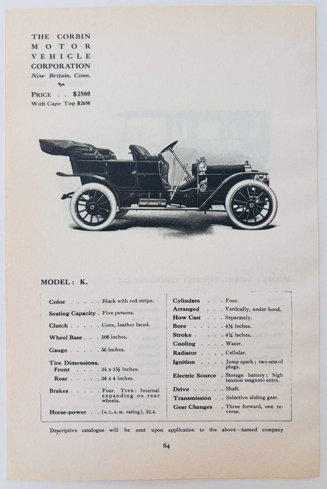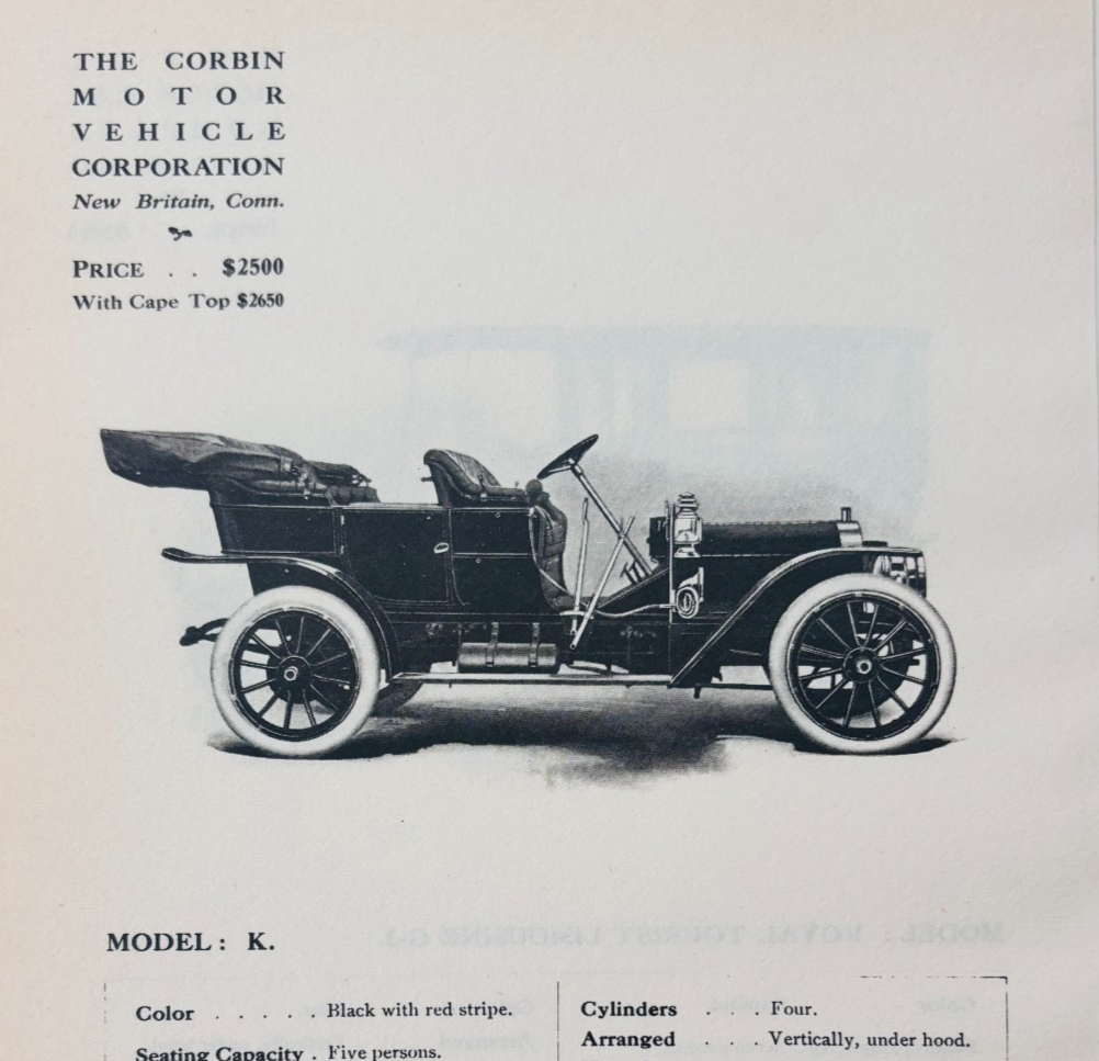 1908 Corbin Motor Vehicle Model K Catalog Advertisement Automobilia F17M2