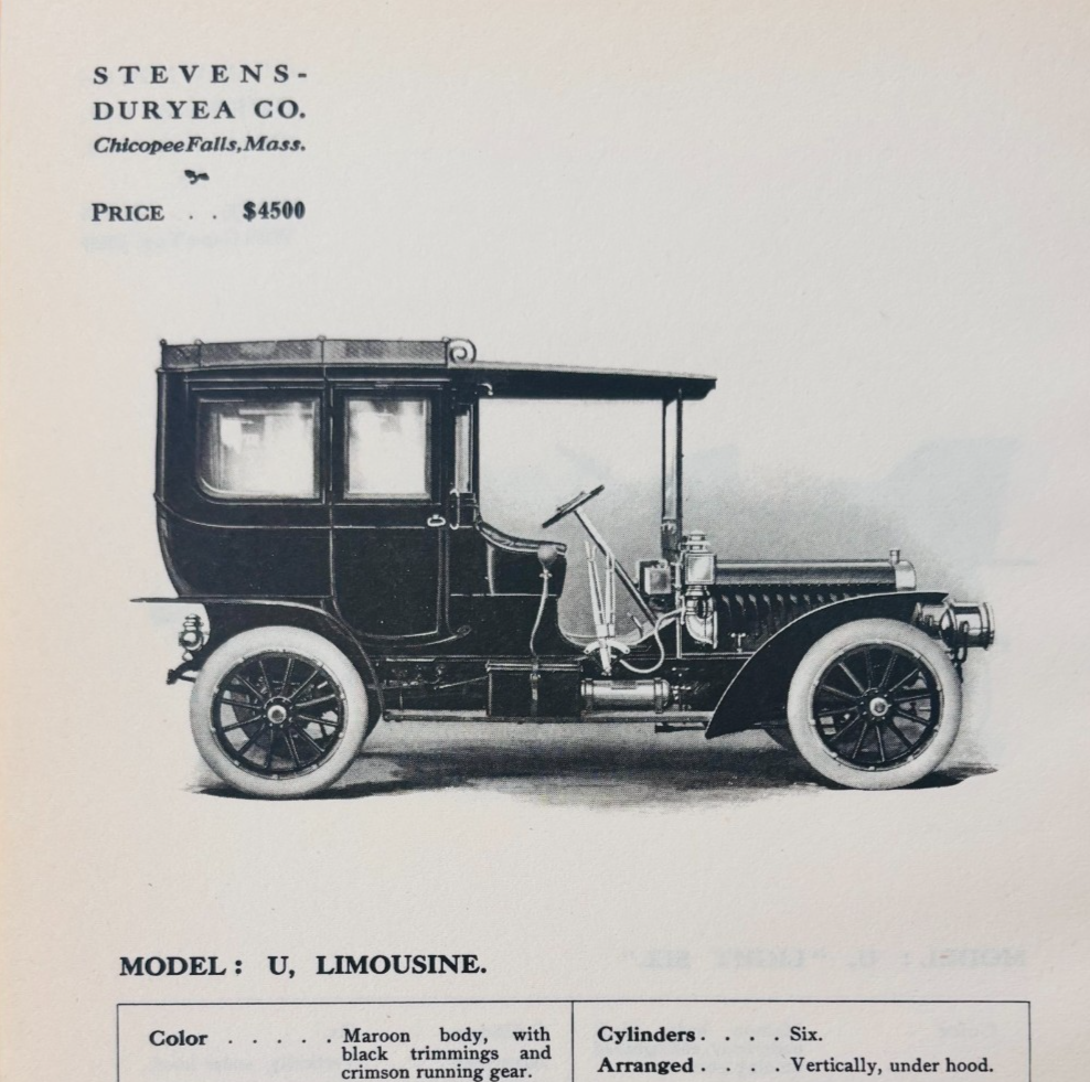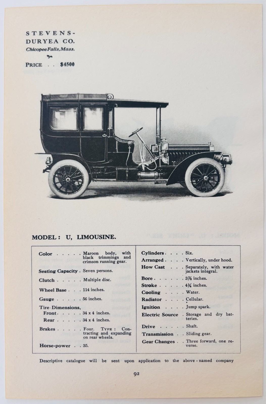 1908 Stevens Duryea Model U Limousine Catalog Advertisement Automobilia F17M1
