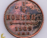- 1909 Russie 1/4 Kopek Cuivre Pièce de Monnaie En Au, Y#47.1