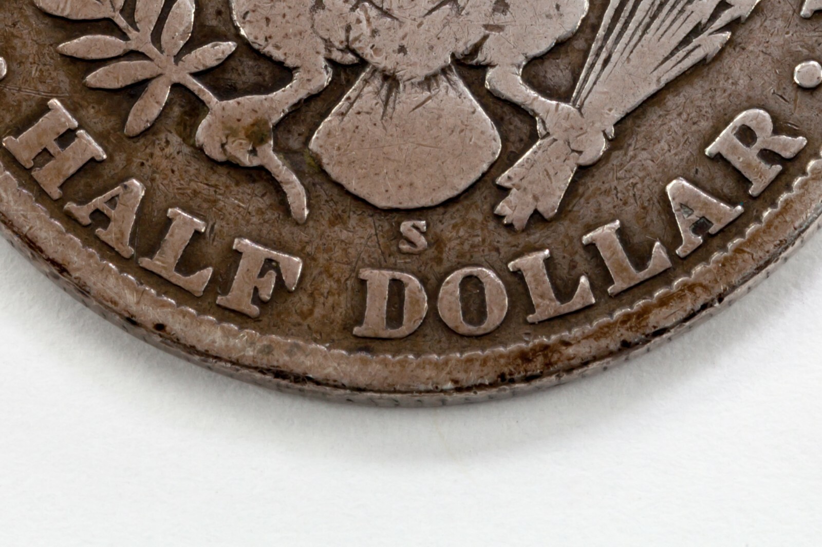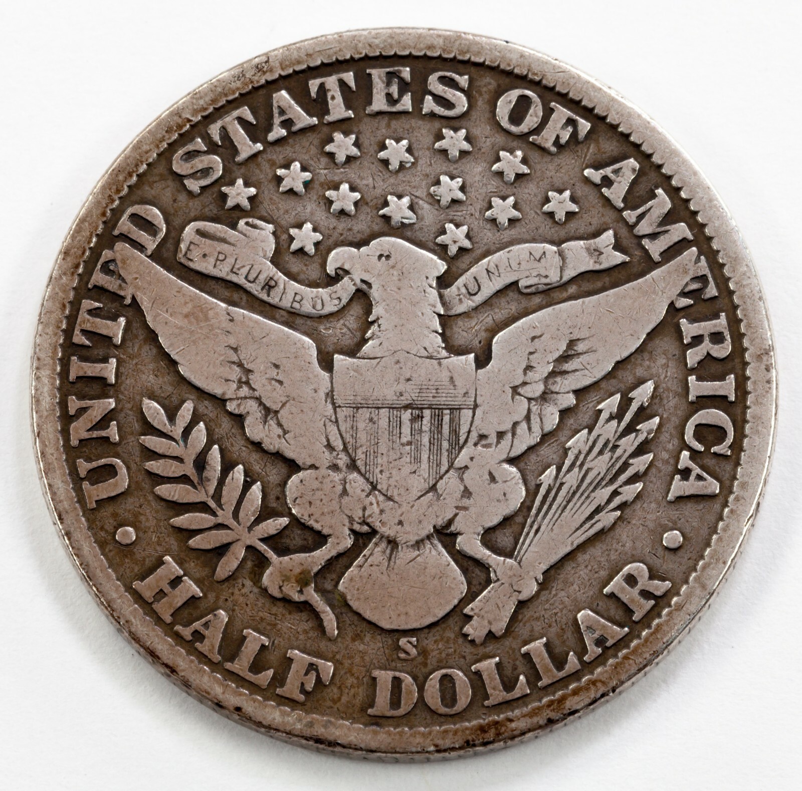 1909-S 50c Barber demi-dollar en bon etat, toute couleur naturelle