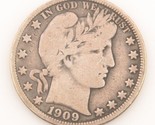 - 1909 US Barber Demi Dollar Pièce Argent (Fin) Philadelphia 50c 1/2$ KM-116