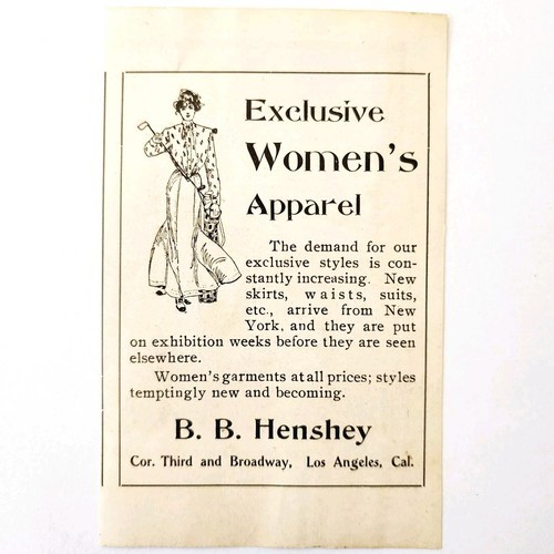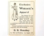 - 1910 Henshey Women's Clothing Advertisement Los Angeles California Fashion E88E