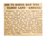 - 1910 President Taft Honors Mathias Ringmann America Name Article NY Journal F13M
