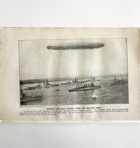 1914 German Zeppelin British Navy Battleship WW1 Print Military War Nautical
