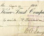 - 1914 Kineo Trust Company Bank Check E.A. Sampson Dover Maine Signed 6294 CHX10