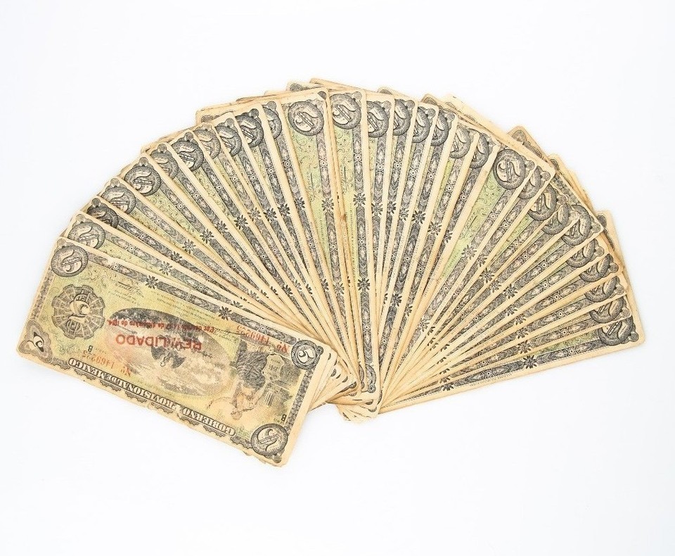 1914 Mexico Revolution 5 Notes de peso, lot de 30