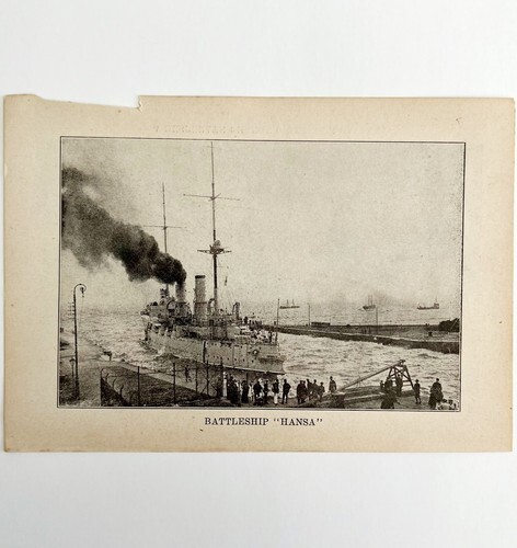 1914 WW1 Print Battleship Hansa Antique Military Period Nautical War Collectible