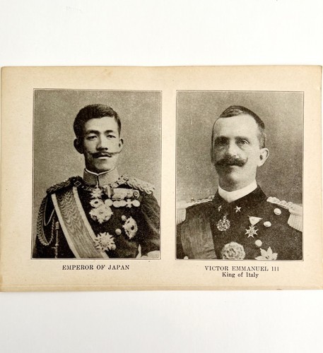 1914 WW1 Print Japan Emperor & Victor Emmanuel III Antique Military Collectible