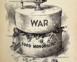 1914 WW1 Print War Food Monopoly Drawing Antique Military Period Collectible
