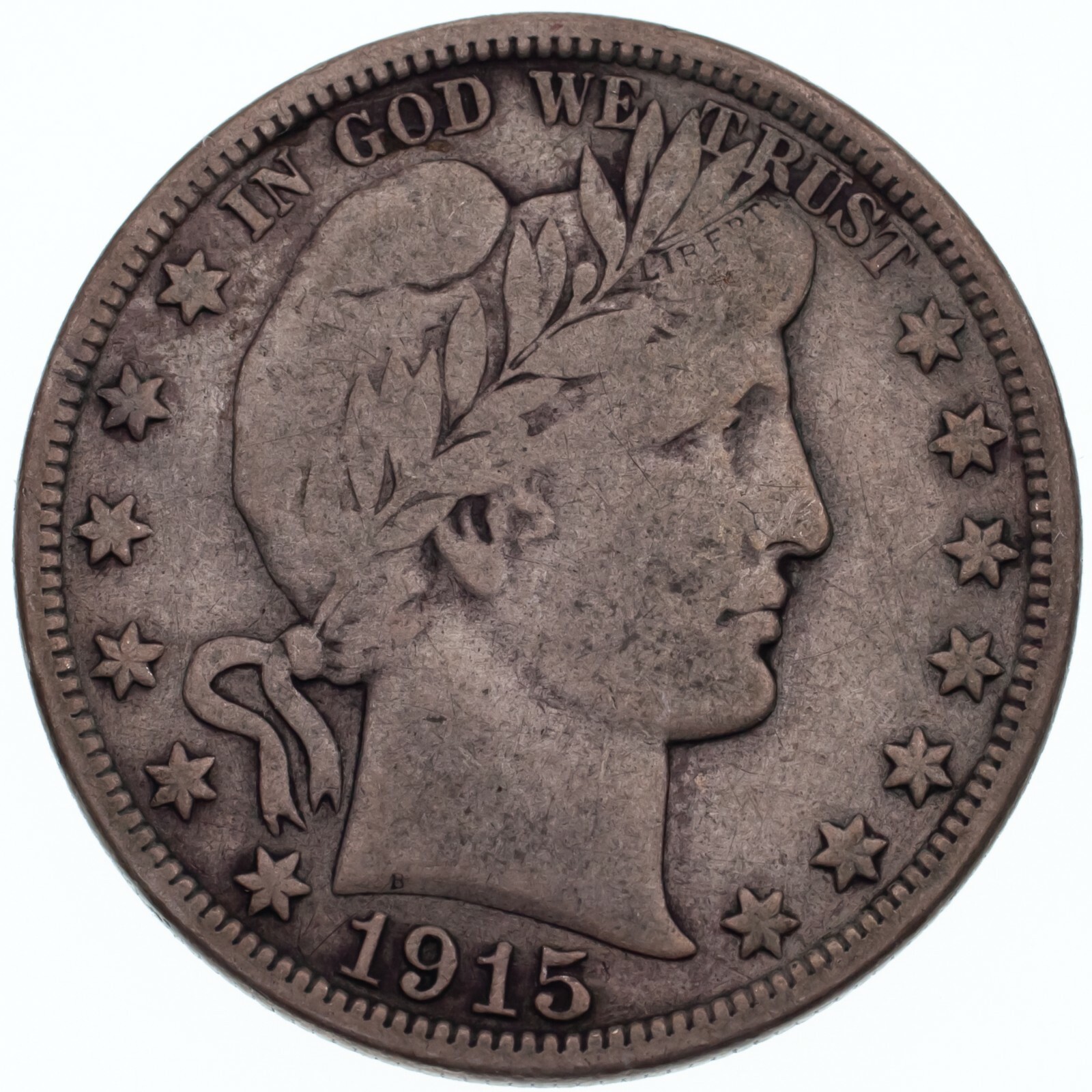1915-D 50c Barber demi-dollar en fin, couleur naturelle, pleine liberte