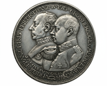 Scopri questa squisita restrizione artistica commemorativa dei Granduchi tedeschi del Meclemburgo-Schwerin del 1915. Questo oggetto unico da collezione e un limite splendidamente dettagliato di una significativa medaglia storica dell'epoca dell'Impero tedesco. Un lato mostra con orgoglio la maestosa aquila imperiale tedesca incoronata, simbolo del periodo. L'altro lato presenta i suggestivi doppi ritratti dei granduchi Federico Francesco I (1815) e Federico Francesco IV (1915), che commemorano un centenario all'interno del Granducato di Meclemburgo-Schwerin. Questo gettone commemorativo offre una connessione tangibile con la storia tedesca dell'inizio del XX secolo. La sua finitura a prova lo rende un'opera d'arte eccezionale e un must-have per qualsiasi serio appassionato di numismatica. Un vero oggetto da collezione, questa medaglia fantasy e un'aggiunta perfetta alle collezioni incentrate sulla storia dell'Impero tedesco, gettoni vintage o pezzi commemorativi unici. Esplora il ricco patrimonio del Granducato di Meclemburgo-Schwerin con questa straordinaria medaglia storica da collezione.