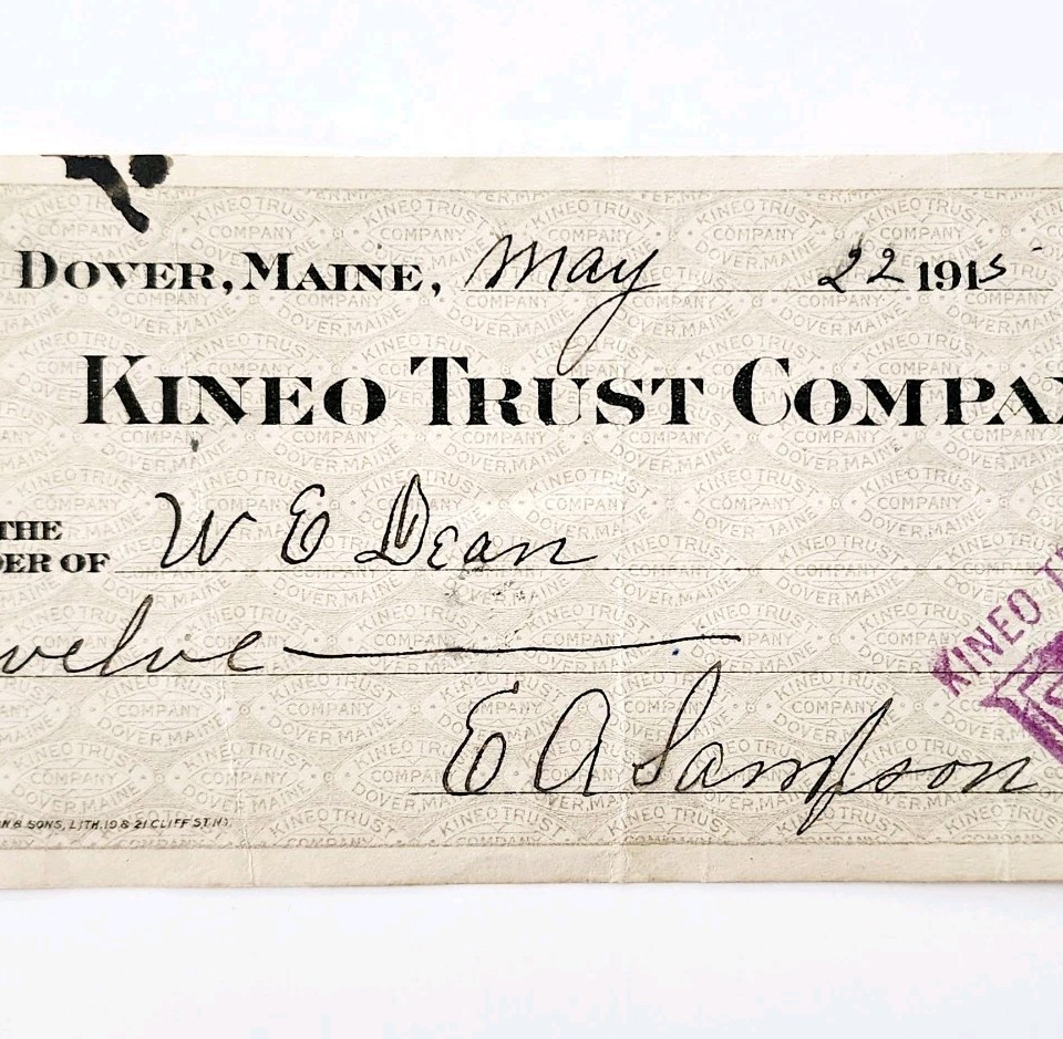 1915 Kineo Trust Company Bank Check E.A. Sampson Dover Maine Signed 7079 CHX14