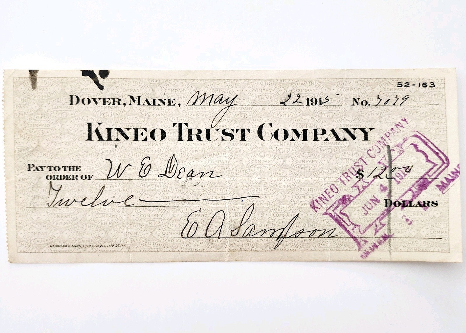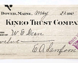 - 1915 Kineo Trust Company Bank Check E.A. Sampson Dover Maine Signed 7079 CHX14