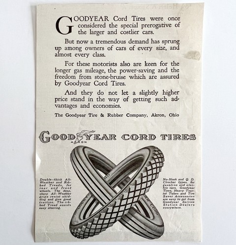 - 1916 Goodyear Cord Ties Bicycle Tire #1 Advertisement Akron Ohio DWMYC3