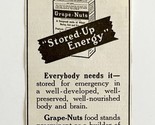 - 1916 Grape Nuts Cereal Stored Up Energy Advertisement Food Ephemera DWMYC4