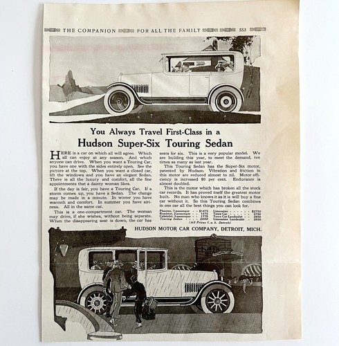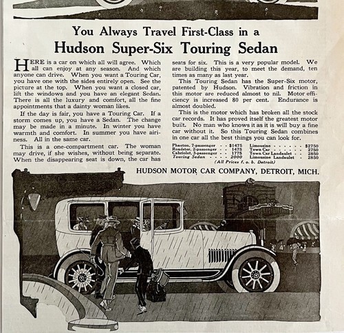 - 1916 Hudson Super Six Automobilia Advertisement Touring Sedan 10.5 x 8" LGADYC3