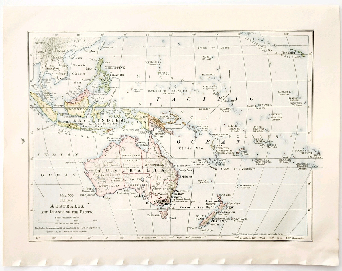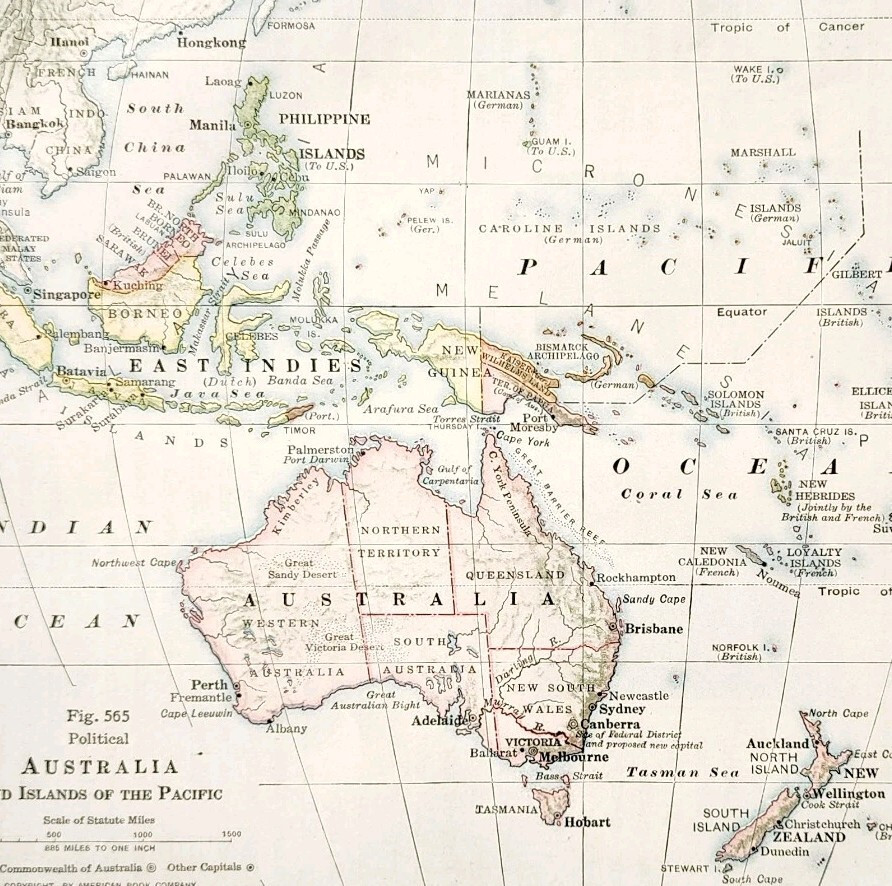 - 1916 Map Australia New Zealand Oceania Pacific Island Philippine Political DWSS9