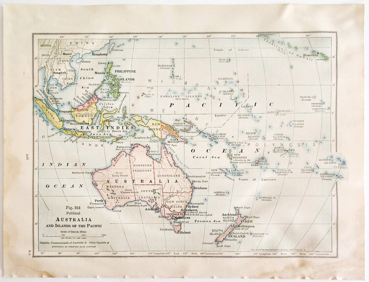 - 1916 Map Australia New Zealand Pacific Island Philippine Political DWSS15