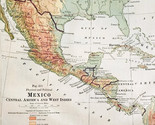 - 1916 Map Mexico Physical Political Central America West Indies Cuba DWSS15