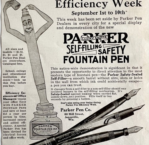 - 1916 Parker Fountain Pen Advertisement Writing Supplies Tools Ephemera DWMYC3