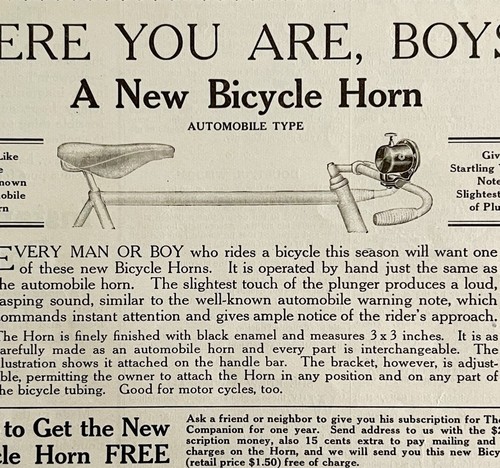 - 1916 Perry Mason Bicycle Automobile Horn Advertisement Bike Ephemera DWMYC1