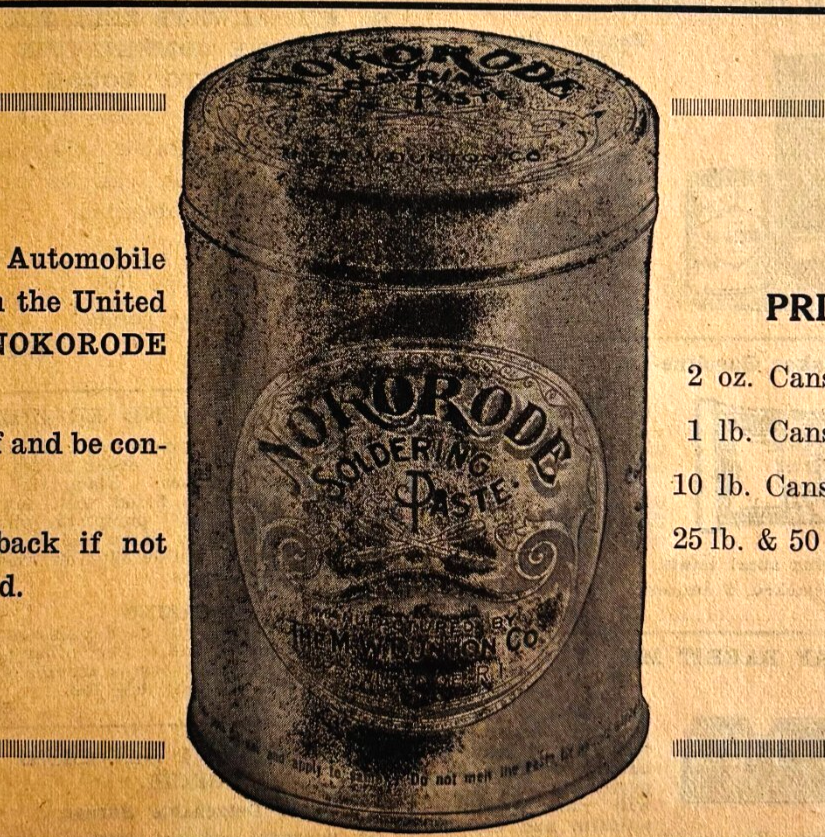 - 1917 Nokorode Soldering Paste Auto Advertisement Chas Miller Automobilia F14A