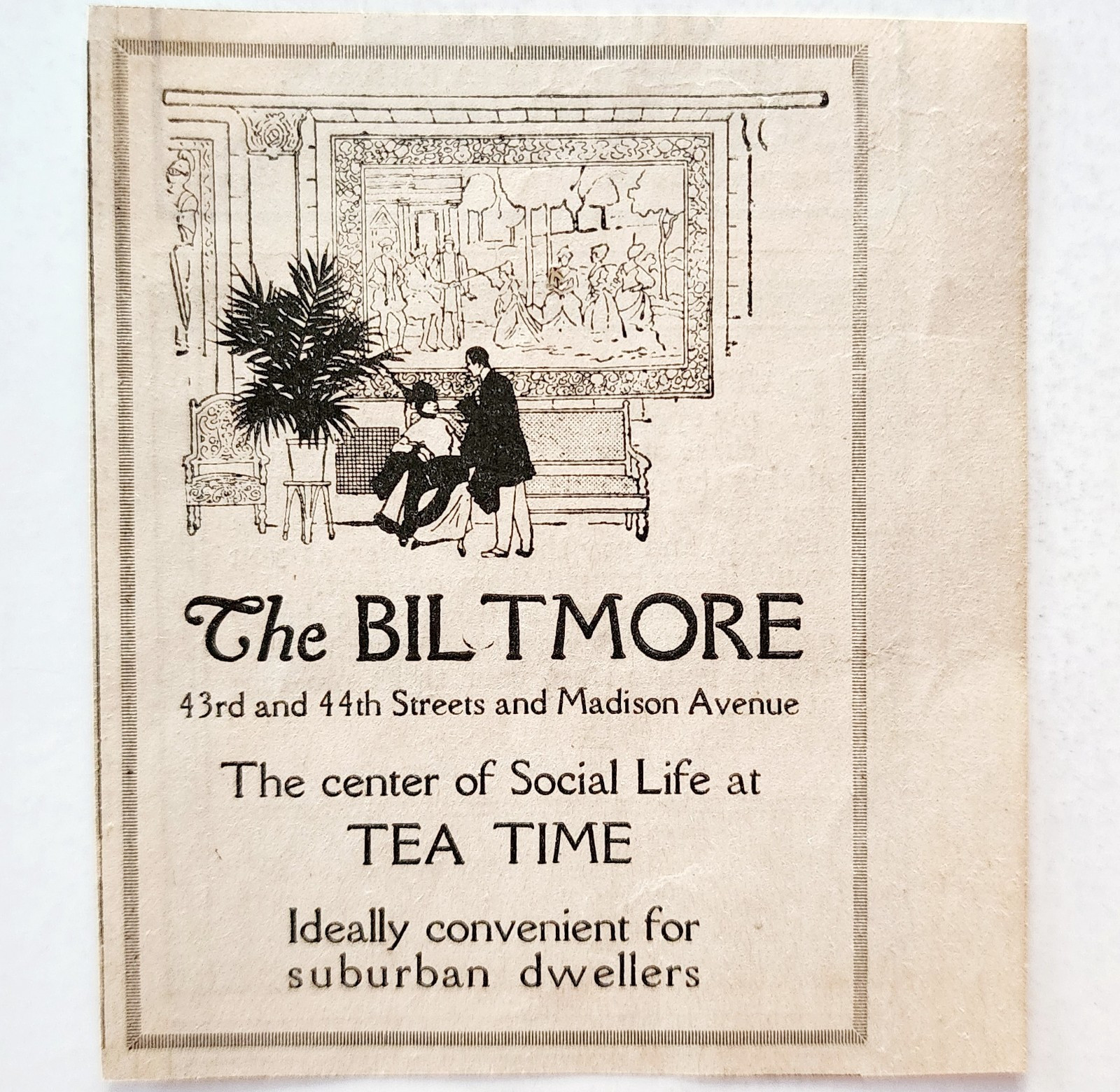 - 1917 The Biltmore Hotel New York City Advertisement WW1 Era NYC Tea Time E98G