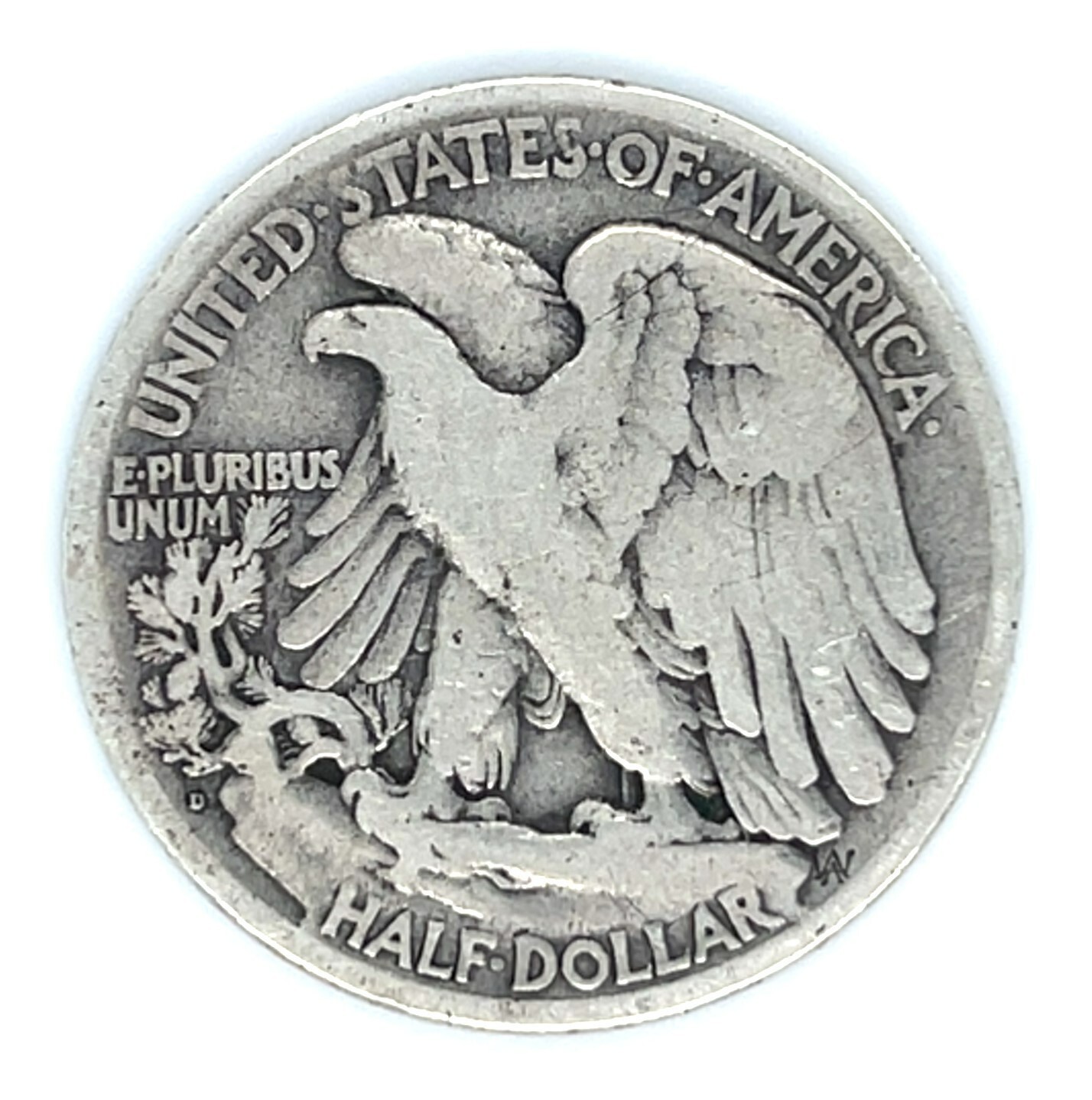 1919-D Walking Liberty 50C Half Dollar Very Good VG Natural Color Full Rims