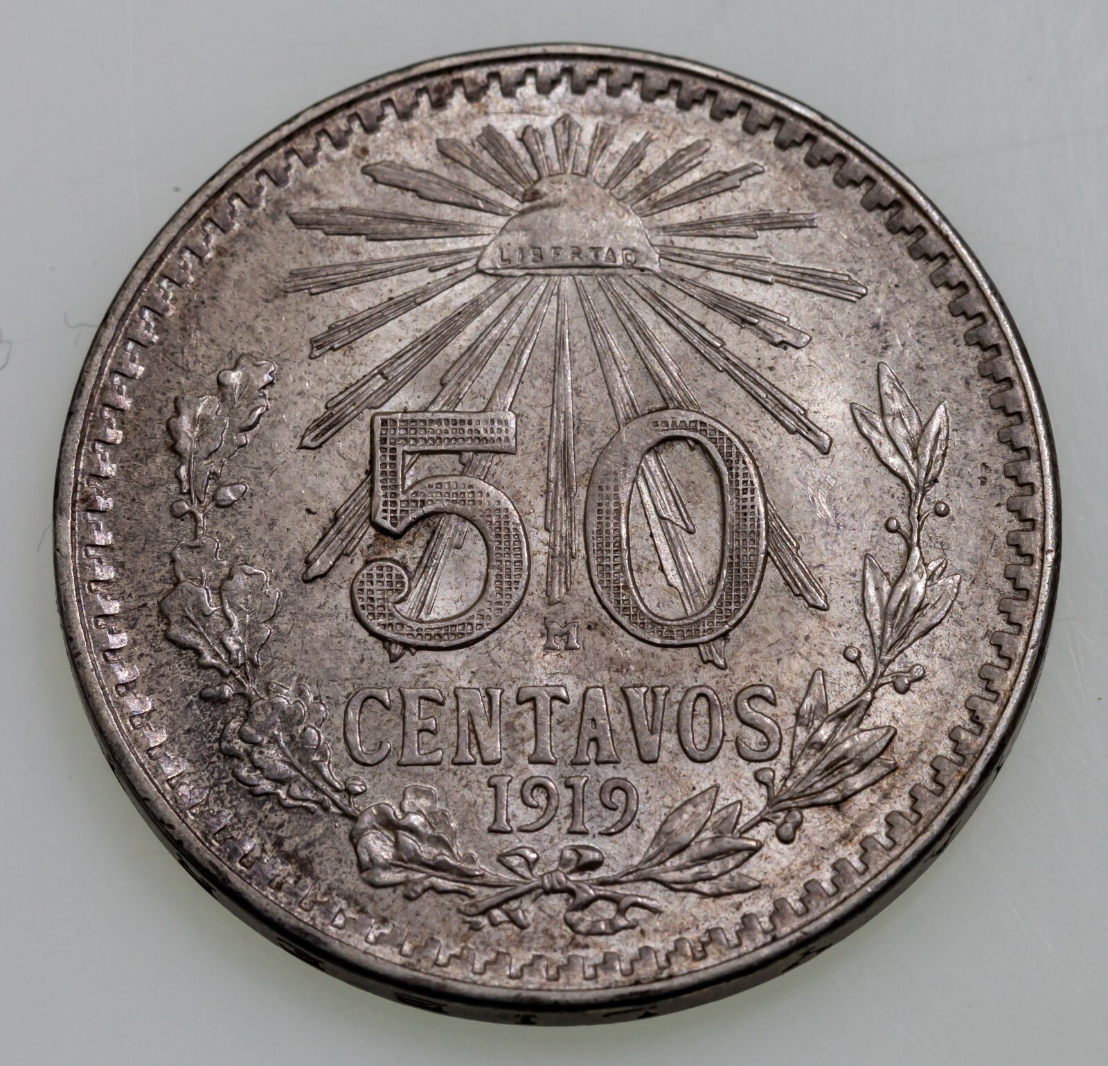 - 1919 Mexico 50 Centavos Pièce Argent En Bu État, Km 447